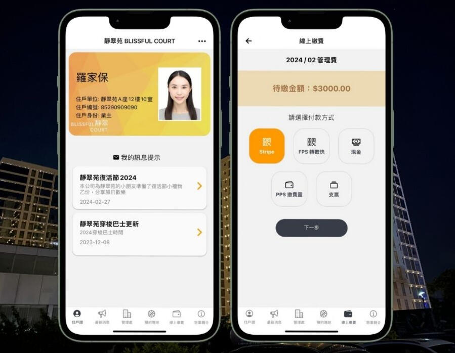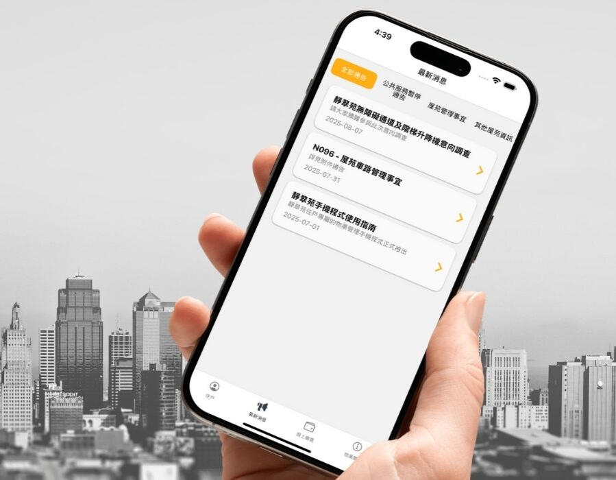 無論住宅、宿舍或寫字樓,都能即時推送物業消息、電子帳單,讓住戶 24 小時掌握物業動態。
